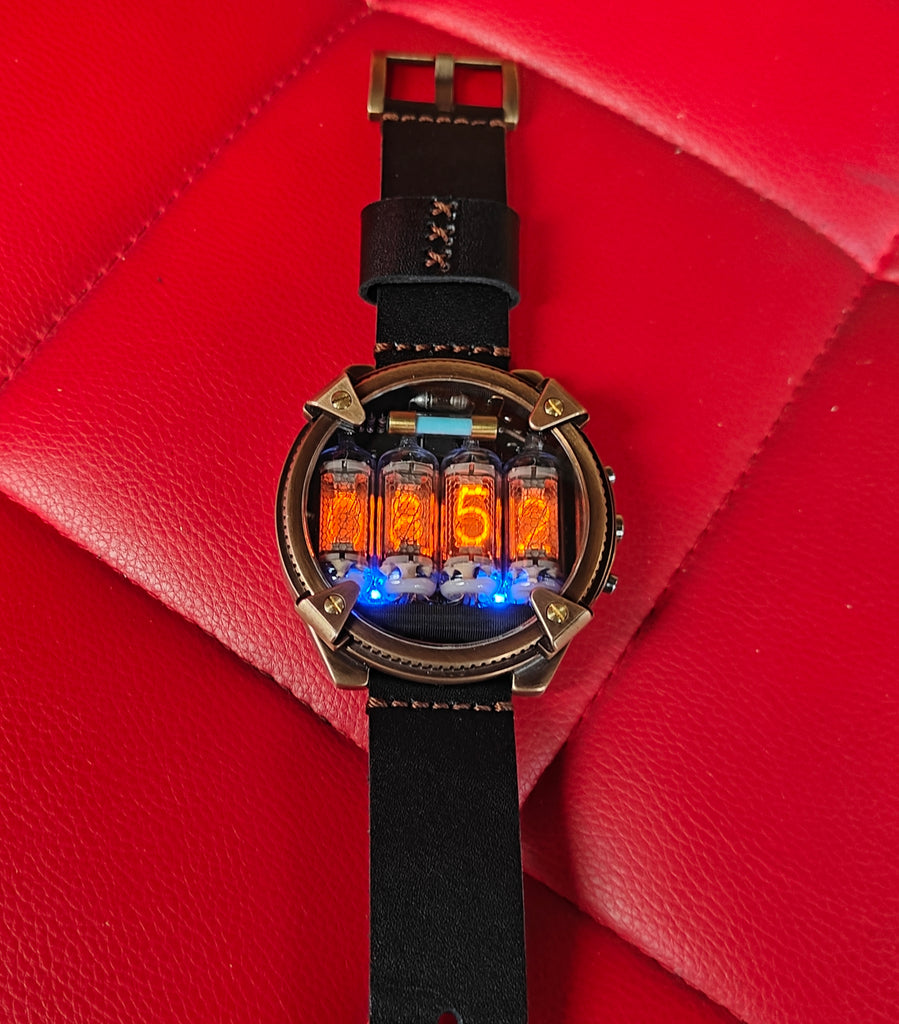 Special Nixie watch, Brass, bronze watch, Handmade with accelerometer