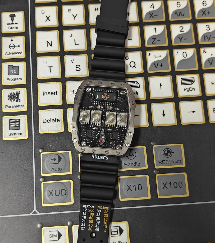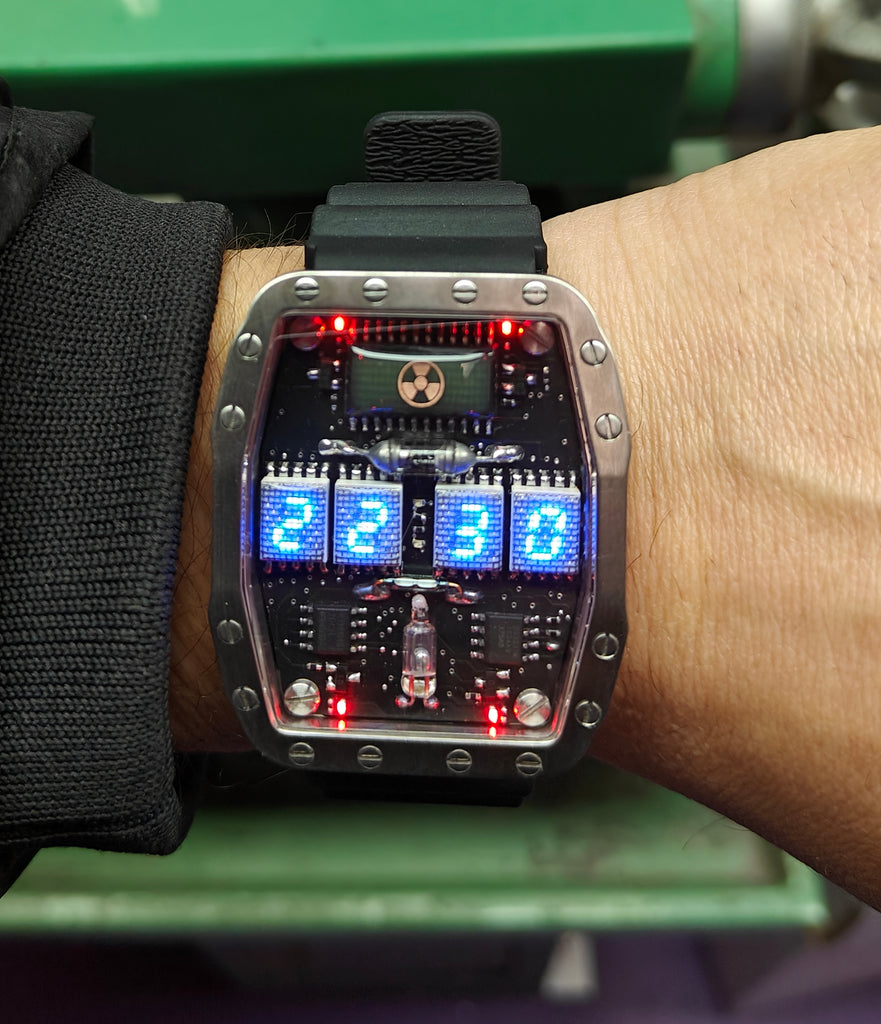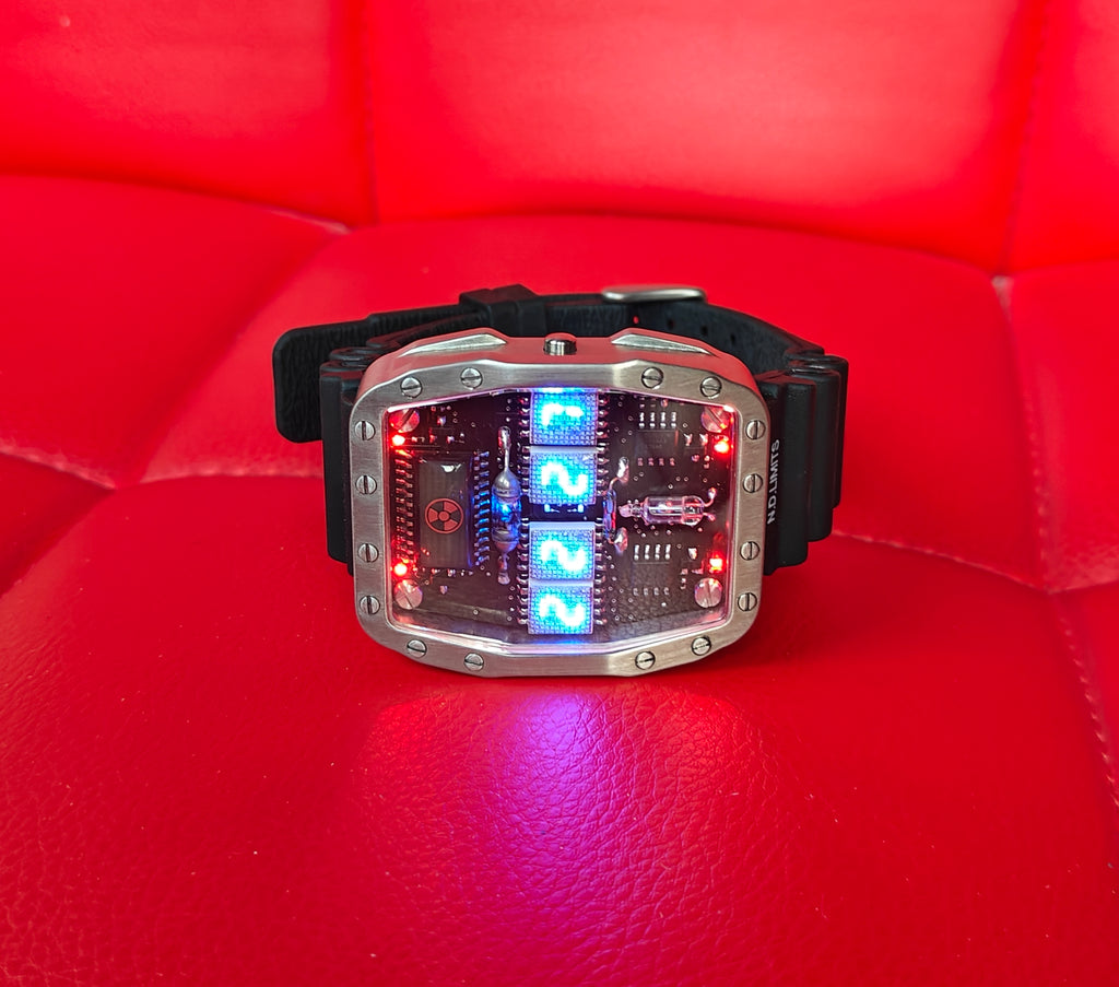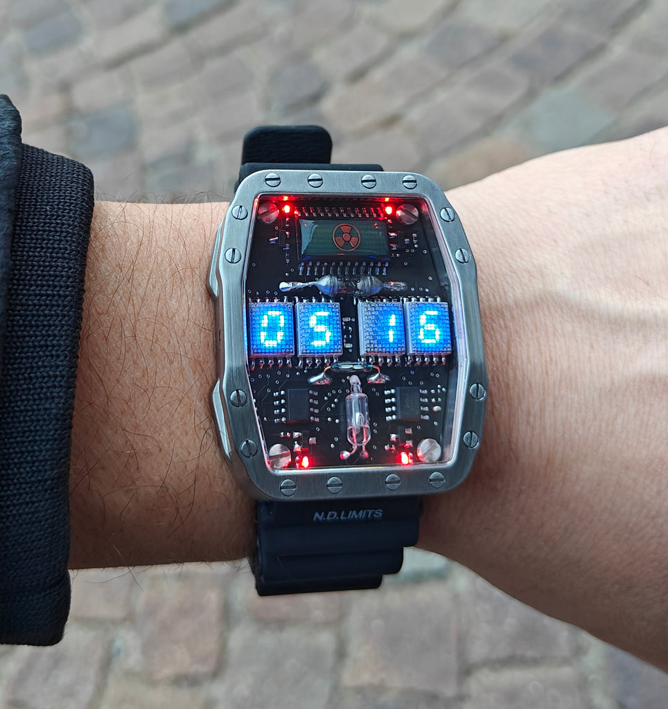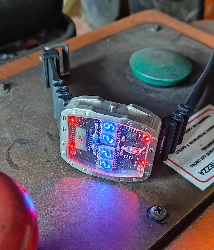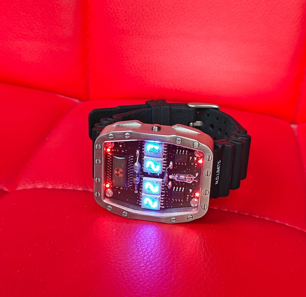 Titanium wrist watch Blue led , handmade, Made in Italy