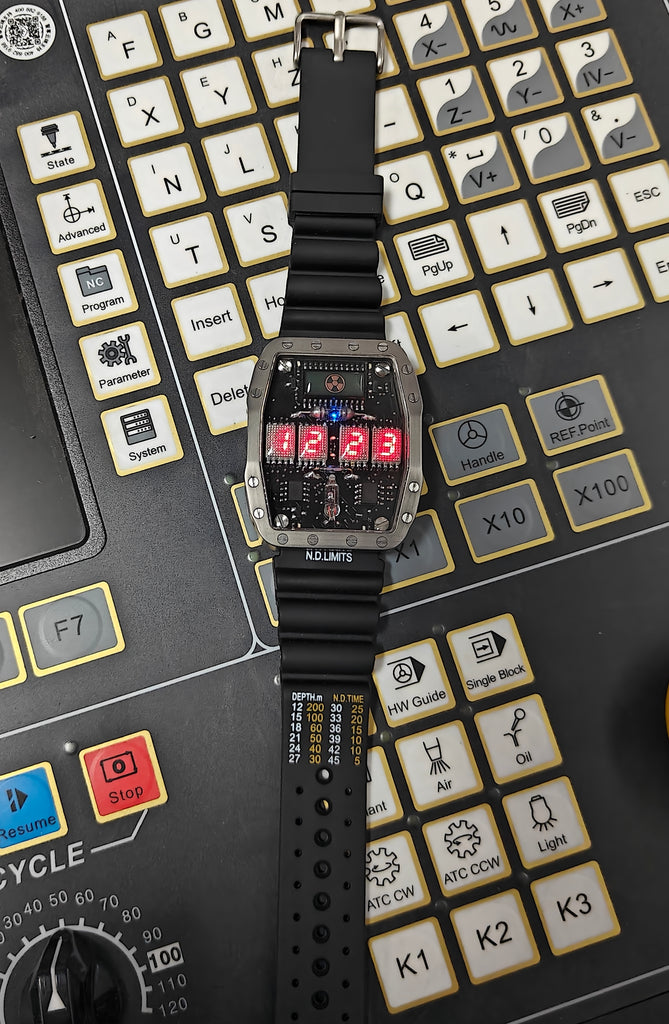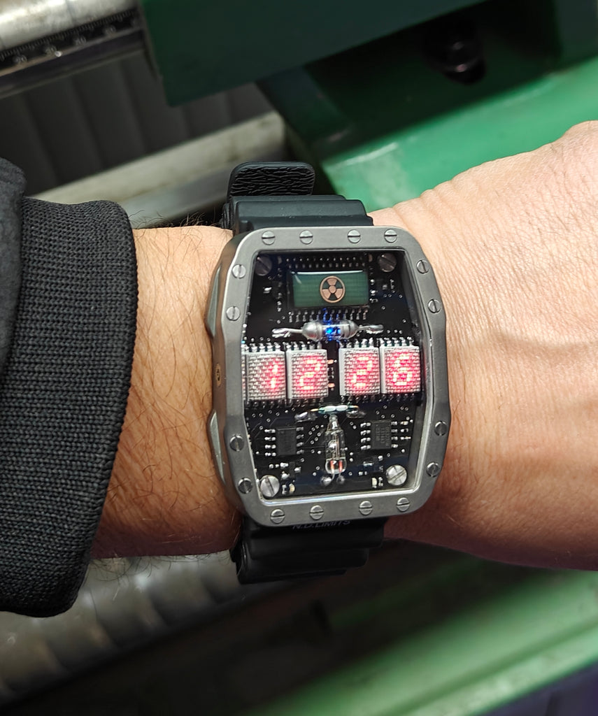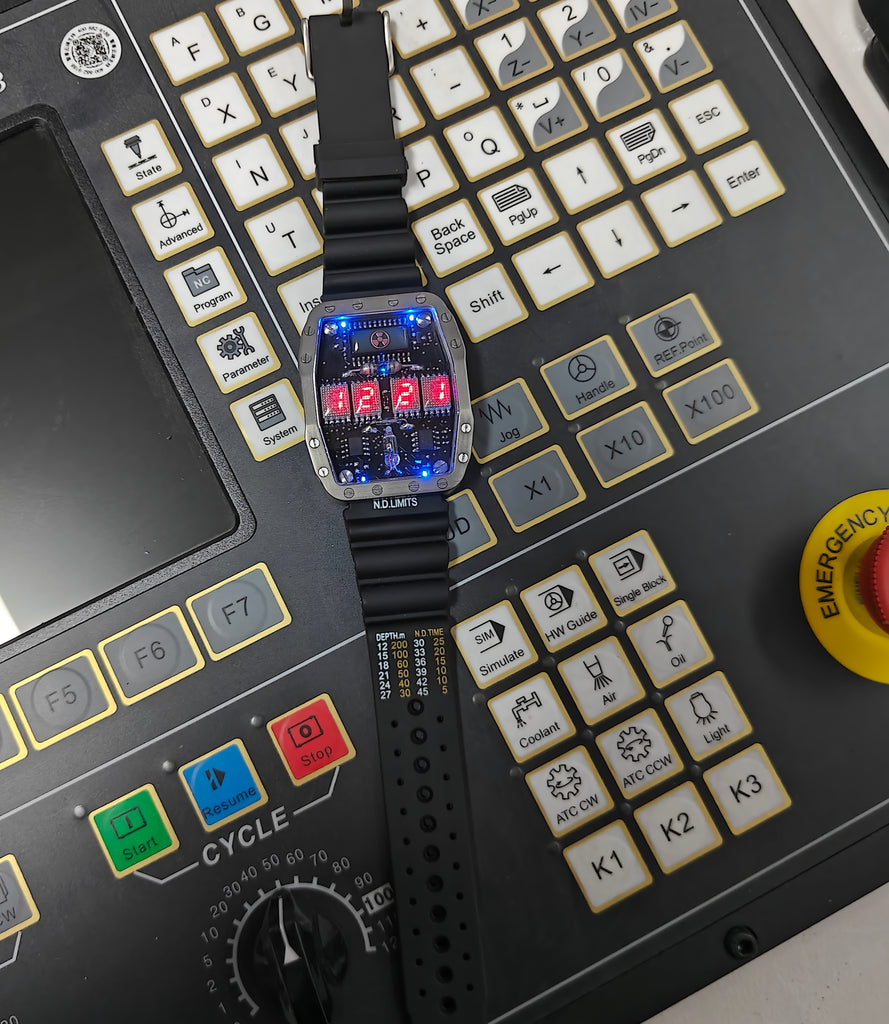 Titanium wrist watch red led , handmade, Made in Italy
